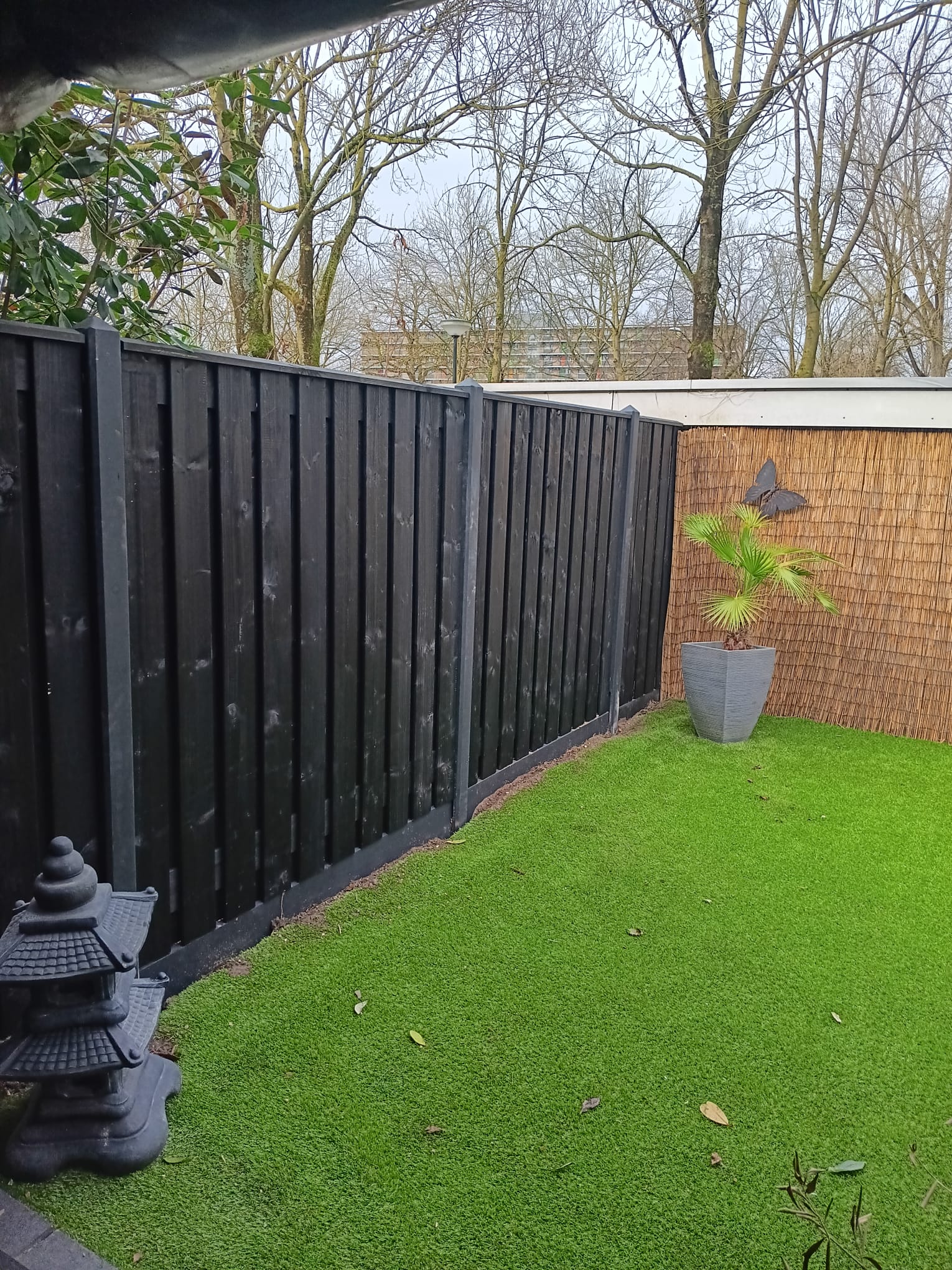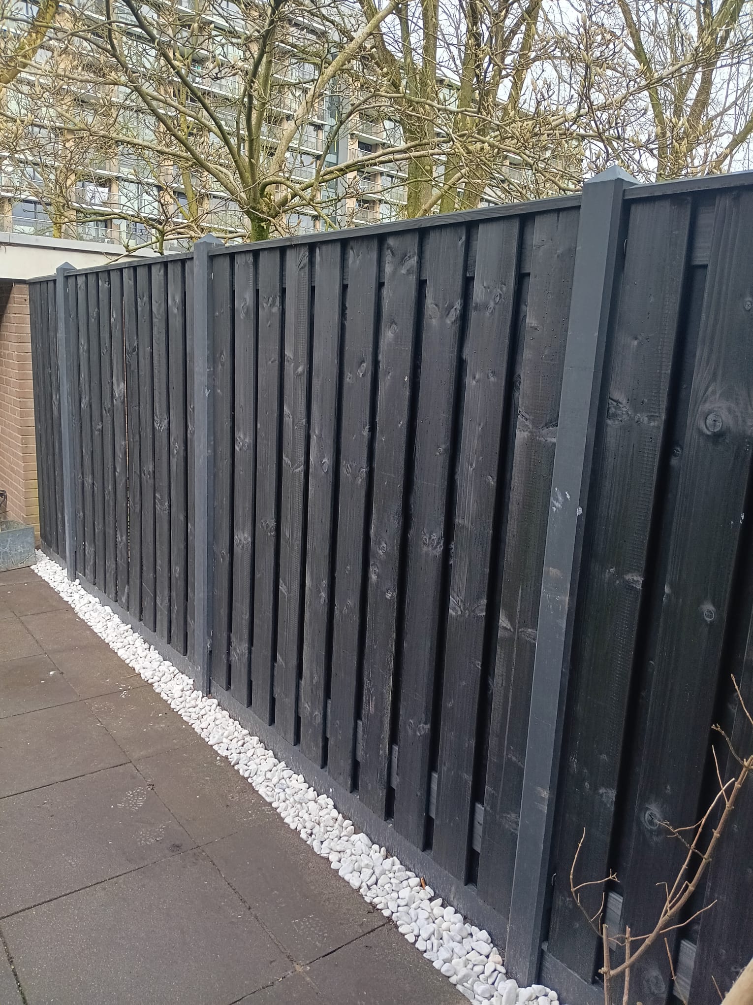 Een zwart grenen hout-beton schutting van TuinAmbiance
