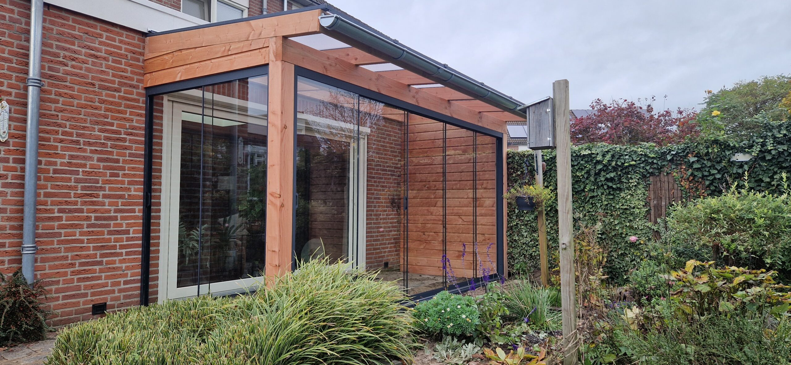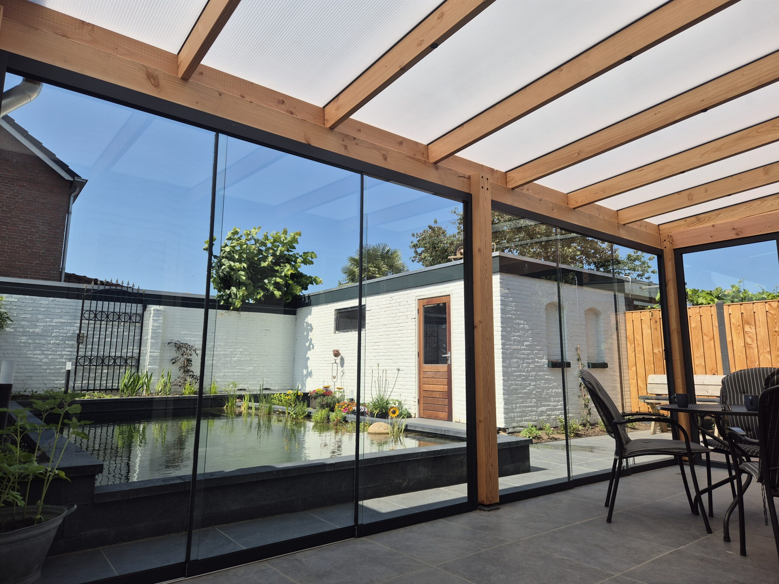 Met glazen schuifwanden kunt u optimaal genieten van uw buitenruimte, ongeacht het weer. Deze wanden bieden flexibiliteit en comfort door uw terrasoverkapping eenvoudig af te sluiten tegen wind en regen, terwijl u toch blijft profiteren van natuurlijk licht. Bij TuinAmbiance heeft u de keuze uit helder of getint glas, zodat u de perfecte oplossing kunt vinden voor uw buitenruimte.